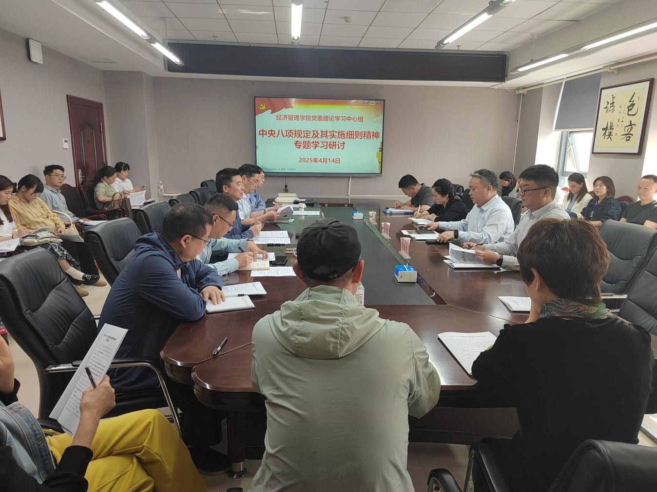 4月14日下午,经济管理学院党委理论学习中心组举行深入贯彻中央八项规定精神学习教育集中学习研讨。党委书记方威主持,全体院领导、处级干部、党支部书记共40人参加学习。学校旁听巡听第一组成员,学校党政办公室主任易锦、离退休工作处处长兼书记易果平、宣传统战部副部长张胜利全程参与旁听。