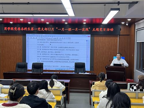 近日,商学院党委本科生第一党支部以“发挥党员先锋模范作用,聚力本科教育教学审核评估”为主题,开展2023年12月“一月一课一片一实践”主题党日活动。