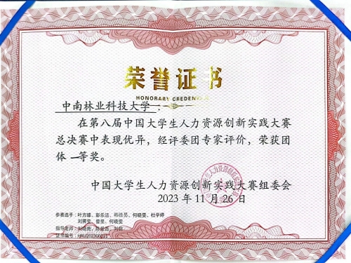 2023年11月24—26日,第八届中国大学生人力资源职业技能大赛总决赛在雄安新区举办。由我院人力资源管理系刘晓艳老师、陈爱吾老师和刘锦老师指导的人力资源管理学生团队参赛,并获得优异成绩。其中,特等奖2项,一等奖2项,二等奖2项。同时,参赛团队代表中南林业科技大学荣获团体一等奖,实现了人力资源管理专业学生竞赛领域的全新突破。