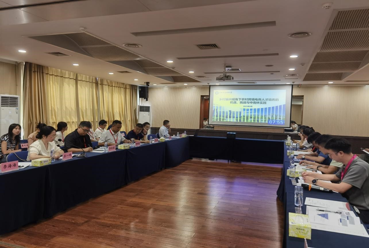 围绕“数字经济时代跨境电商人才培养”主题,来自湖南工商大学、湘潭大学、中南林业科技大学、湖南文理学院、邵阳学院、湖南外贸职业学院、湖南劳动人事职业学院的6位专家代表,分别从数字贸易时代跨境电商人才培养探索与实践、中非经贸合作人才培养等方向分享了各校实践与思考。彭一峰老师围绕“乡村振兴视角下农村跨境电商人才培养的机遇、挑战与中南林实践”做了主题报告。