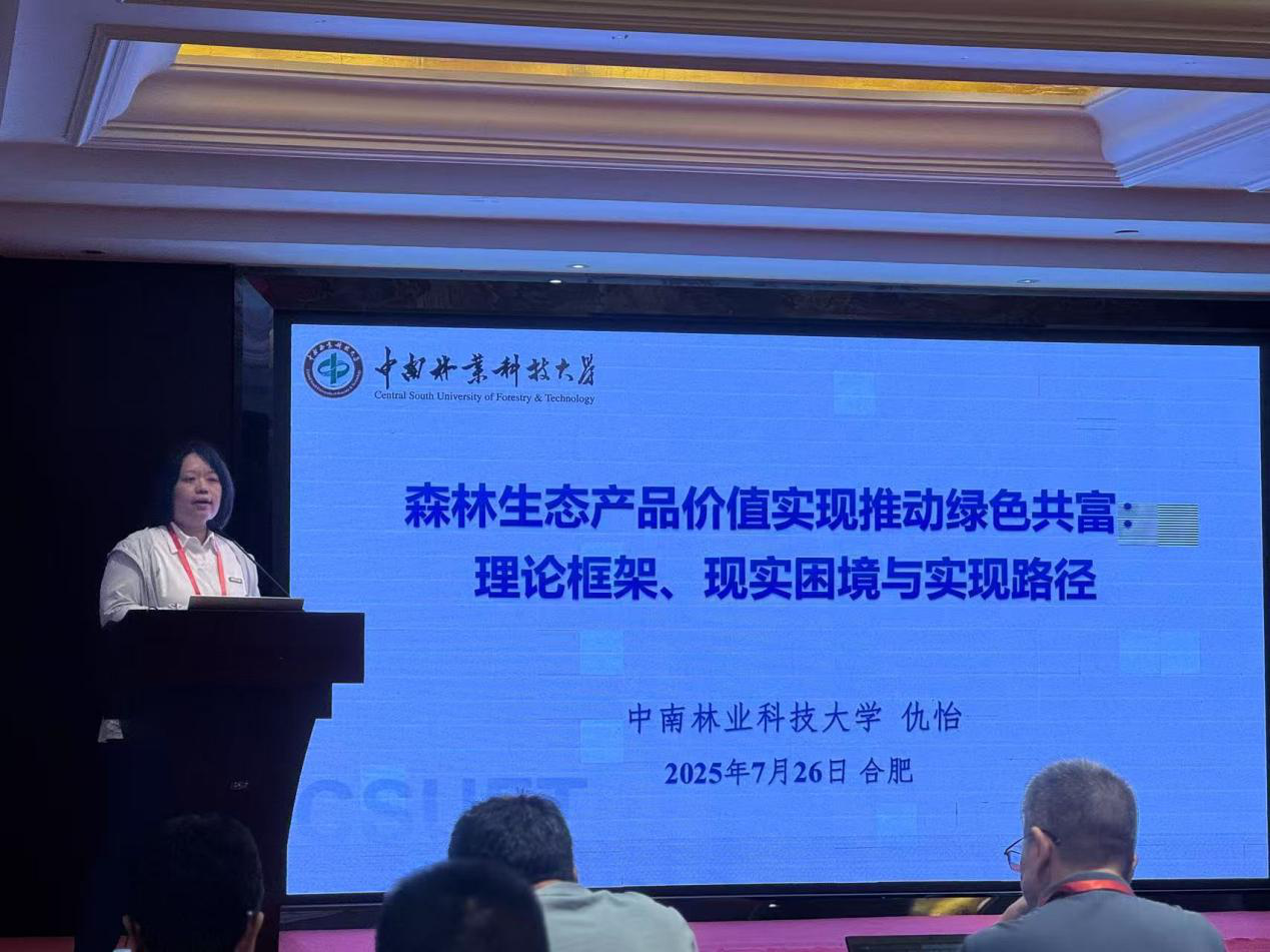 仇怡教授在平行论坛四“现代化城郊经济促进高质量城乡融合”中作主旨发言。她以《生态产品价值实现推动绿色共富:理论框架、现实困境与实现路径》为题,系统阐释了生态资源转化为经济财富与民生福祉的核心机制,深刻剖析当前制度瓶颈与实践挑战,并提出了实现路径,为探索绿水青山向金山银山的科学转化贡献了中南林思路,引发与会专家热烈讨论。