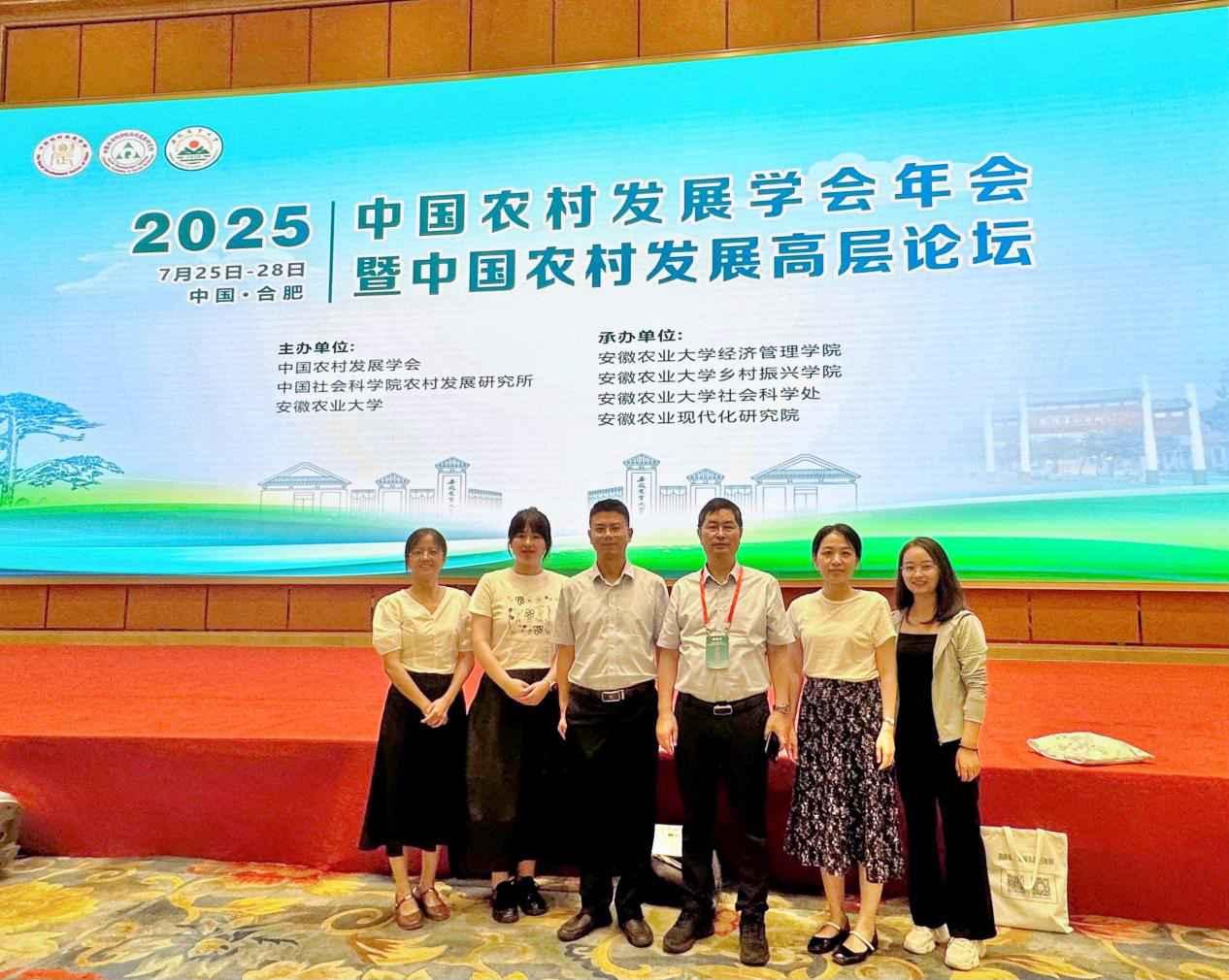 7月25日至7月28日,由中国农村发展学会主办、安徽农业大学承办的“中国农村发展学会年会暨中国农村发展高层论坛(2025)”在合肥举行。本次论坛以“高质量推进城乡融合发展”为主题,汇聚全国三农领域顶尖专家学者、政府决策者及行业实践先锋,共同擘画乡村振兴战略下城乡融合发展的新蓝图。我校校长仇怡教授率经济管理学院教师深度参与。