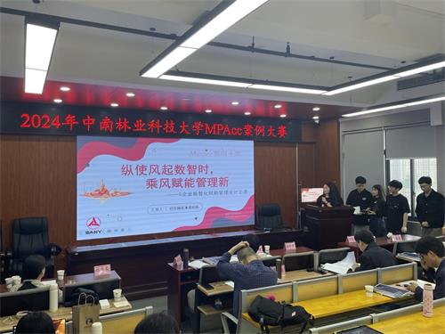 2024年4月19日,中南林业科技大学2024年MPAcc企业案例大赛在商学院顺利举行。大赛由MPAcc中心主任张昌文主持,商学院党委书记李婷发表重要讲话。商学院副院长甘瑁琴教授、会计系盛均全教授、国际商务系蔡珍贵教授、市场营销系陈德良教授、MBA中心主任罗建兵担任现场评委。本次比赛共有2022级和2023级会计硕士组成的10支队伍参加,最终以“校外专家盲审评分(70%)+校赛现场评分(30%)”的形式,评选出“专业团队”“不断超越队”“重案六组”和“对方辩友来我们队”4支队伍参加由湖南省教育厅主办、中南大学承办的第九届湖南省高校MPAcc企业案例大赛。