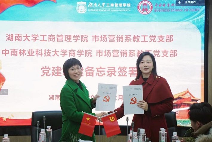我院市场营销系教工党支部与湖南大学工商管理学院市场营销系教工党支部签署共建协议
