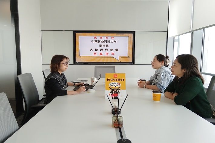 湖南金拱门食品有限公司人力资源部文利经理对李婷书记一行的到来表示热烈欢迎,并陪同参观了公司。随后,双方就校企合作事宜进行了座谈。座谈会上,文利介绍了公司发展历程、未来规划和岗位需求。李婷介绍了商学院的基本情况以及学科建设、人才培养等方面的优势与特色,并表示希望通过访企拓岗行动,为毕业生和企业搭建双向奔赴的桥梁,推动学校与企业在产教融合、实习就业等方面深化合作。