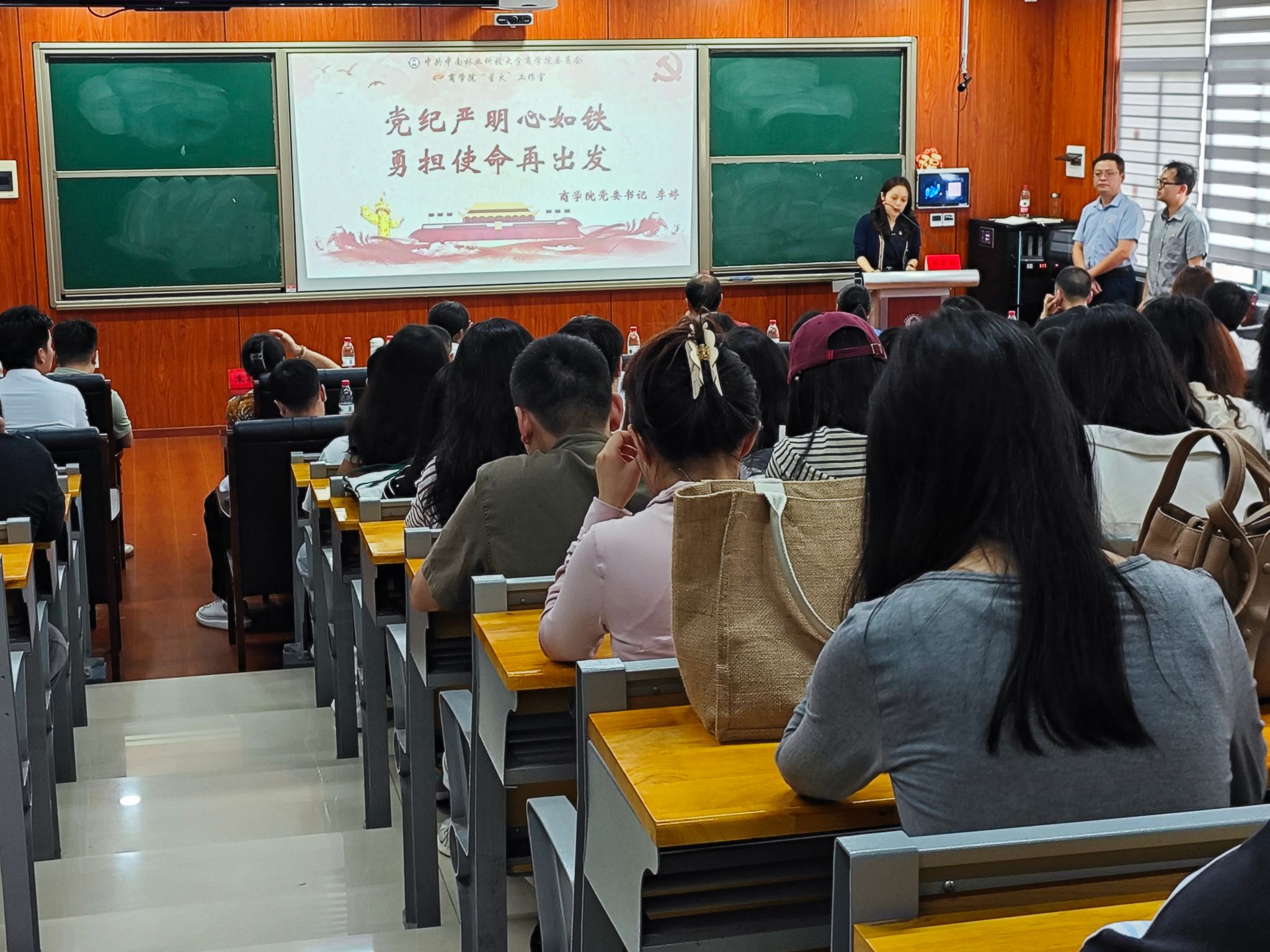 会上,李婷书记为2024届毕业生党员作了题为党纪严明心如铁,勇担使命再出发的专题党课。她结合今年习近平总书记在湖南考察时的重要讲话和指示精神,指出青年学生们应当明德知耻,树牢社会主义核心价值观,立报国强国大志向,努力成为堪当强国建设、民族复兴大任的栋梁之材。李婷向毕业生党员们提出了锤炼党性修养,增强政治意识不忘初心,牢记校训,勇往前行坚守党的纪律,牢记使命,全心全意为人民服务等三点希望,鼓励同学们勇于担当、牢记使命、立志报效祖国,表达了对全体毕业生党员持续进取,不懈奋斗殷切期盼与真挚祝愿。