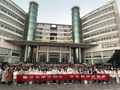 11月27日上午,学院在陶铸广场举行“国旗下的誓言”暨“敬礼国旗 传承经典”主题教育活动。学院党委副书记徐钰婷,校学工部许佳老师,学院全体专兼职辅导员出席,全体学生党员、预备党员、入党积极分子及2023级全体新生参加活动。