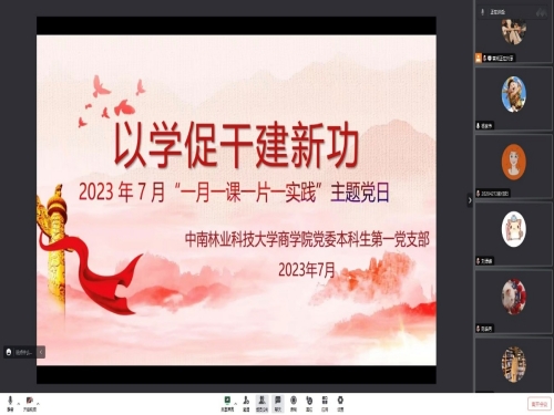 7月31日,商学院党委本科生第一党支部以“以学促干建新功”为主题,通过线上和线下相结合的方式,开展2023年7月“一月一课一片一实践”主题党日活动。