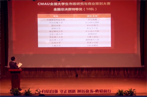 2022年11月19日,由华东理工大学承办的首届CMAU市场研究与商业策划大赛全国总决赛落下帷幕。由商学院、经济学院、计算机与信息工程学院、理学院学生组成的“月生沧海队”、“未来已来队”分别荣获特等奖、三等奖。同时我校也被评为最佳组织奖单位。