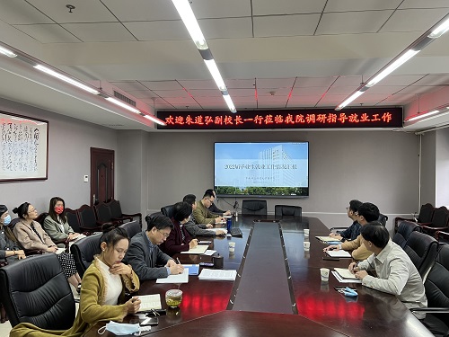 2022年4月19日上午,副校长朱道弘、招生就业处处长何志祥、就业管理科科长沈学杰一行莅临我院,就2022届毕业生就业工作进行调研。商学院全体班子成员、就业专干及全体辅导员参加了调研会。