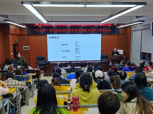 2021年10月25日晚在博文楼1205举行了“正大杯”第十二届全国大学生市场调查与分析大赛校赛启动仪式暨动员大会。本次启动仪式由中南林业科技大学教务处主办,商学院承办。商学院甘瑁琴副院长、大赛组委会老师及全体参赛队员参加了本次动员大会。