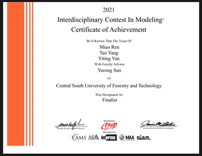 近日,2021年美国大学生数学建模竞赛与交叉数学建模竞赛(MCM/ICM)成绩公布,我院学生积极参加此次大赛并取得了优异成绩。2018营销任淼、杨涛和颜依婷同学在本次比赛中荣获F奖(特等奖提名),2018农经陈文豪、2019会计曾畅同学获荣誉奖(简称H奖)。