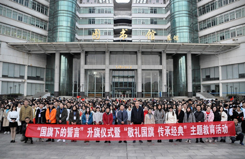 旭日朝升,晨岚弥漫。怀着对祖国的美好祝愿,中南林业科技大学商学院于12月9日举行了“国旗下的誓言”升旗仪式暨“敬礼国旗,传承经典”主题教育活动,奏响书写青春的乐章。出席本次活动的领导嘉宾有中南林业科技大学学工部副部长李建林老师,图书馆党总支副书记兼副馆长王运峰老师、图书馆阅读推广部老师及学生馆长团队成员,商学院党委书记陈文俊教授及商学院的全体辅导员老师。