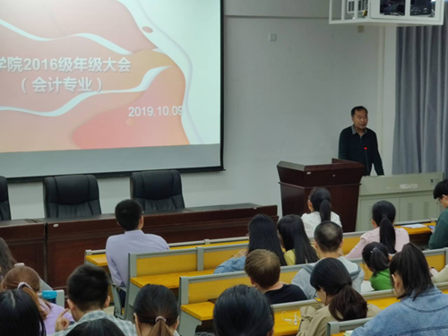 为保障我院2016级毕业生顺利毕业,做出更好的毕业规划。近期我院2016级分专业召开2016级毕业生年级大会。邓丽君副院长、原副处级组织员吴友亮老师、系主任周慧滨副教授、ACCA中心主任敬文举副教授、辅导员朱莉华老师和胡旭老师出席,2016级全体学生参加。