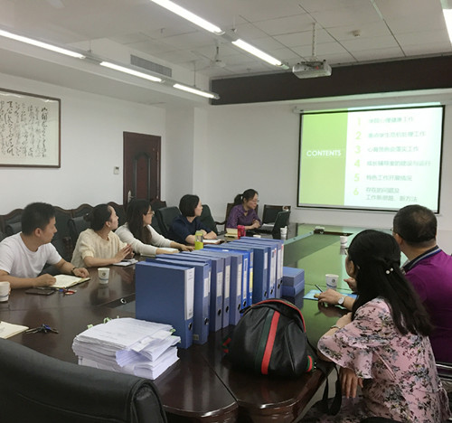 罗老师和王老师首先对我院心理工作的日常档案进行了审核,其中包括个人成长辅导记录表,团体辅导记录表,班主任辅导记录表,心育会议记录,重点学生档案等。接着朱老师针对我院重点学生危机处理、心育员例会落实、成长辅导室的建设和运行以及特色工作开展情况进行了详细的汇报。在听取完汇报后,徐书记和两位老师就心理工作现存问题以及工作新思路展开讨论。