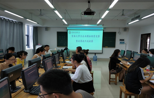 6月23日,由教务处主办,商学院承办的第一届企业模拟经营竞赛暨省赛选拔赛在文综楼606机房举行。比赛聘请了新道软件公司肖仁忠老师作为专业评委,出席比赛的还有肖阳老师,贺志雄老师,宋璇老师及肖默老师。