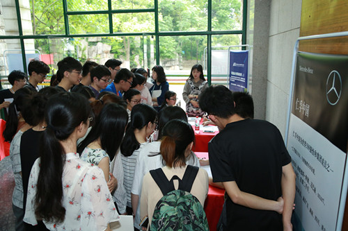 当日下午1:30至2:30,JHC赛前专场招聘会在报告厅门口举行。到场同学直接向招聘企业代表递送简历、面对面交流,招聘现场氛围火热。