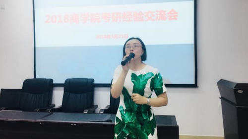 为增进我院考研学生之间的交流,我院于5月21日晚7:00在文科楼1205报告厅举办了2018商学院考研经验交流会,本次交流会由已考取中国人民大学的张珂、考取浙江大学的程丽娜、考取湖南大学的何深洋、考取重庆大学的谭婧、考取南开大学的史伟娟、考取中南大学的徐倩昱和考取中南财经政法大学的蒋云主讲,出席本次讲座的有商学院党委副书记徐钰婷老师、就业专干胡旭老师,我院200余名学生到场细心聆听了本场讲座。
