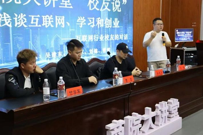 讲座上,刘锦学长以自身经验为例强调了学习的重要性,建议同学们寻找学习动力和方法,同时科普了互联网的业务构成,回答了在创业初期如何组建团队的问题。吴建东学长则从“选择就业还是创业”等问题入手建议同学们锻炼好能力再创业。而曹雷学长从职业规划等方面为同学们进行指导。最后付学军学长给同学们阐述了提高工作上受挫性的重要性。