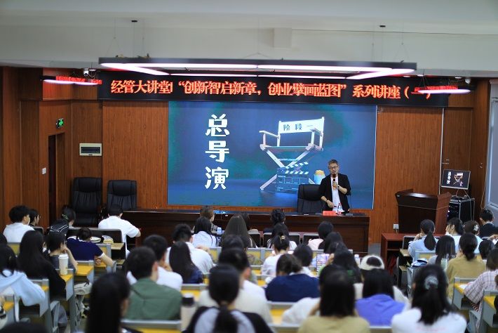 4月22日,经济管理学院在博文楼南1205报告厅举行以“镜头里的商业狂想曲”为主题的创业讲座。斜杠青年代表、湖南省范本青春文化传媒创始人秦敏毅现身博文楼报告厅,以“从传媒打工人到内容创业者的N种可能”为主线,为经管学子拆解实战版创业攻略。经济管理学院辅导员何佩云老师,湖南省范本青春文化传媒有限公司、2014级校友张嘉益出席。