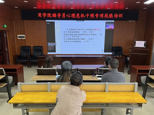 4月19日上午10:00,我校心理中心举办心理危机干预专项技能培训,商学院组织全体辅导员在博文楼南1205室通过线上方式参加了此次培训。