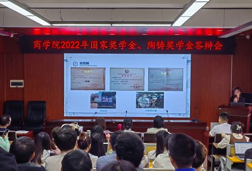 2022年10月05日中午,中南林业科技大学商学院2021-2022年度本科生国家奖学金、陶铸奖学金答辩会于博文楼南1205举行,商学院党委副书记徐钰婷老师、班主任代表黄炜虹老师及各年级辅导员出席答辩会并担任评委,各年级学生代表现场观看答辩。