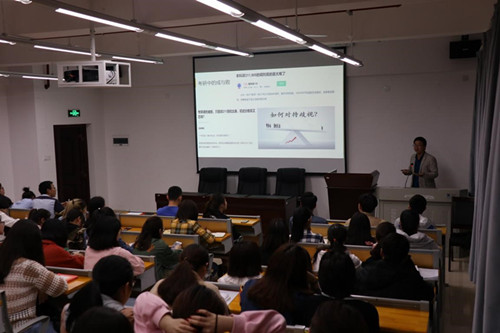 讲座一开始,袁宝龙老师通过浅谈当代大学生的校园生活学习现状,指出当代大学生在兴趣、性格、技能、职业、环境、价值观等方面存在的问题。随后,借助“本科非211、985的学生考研调剂难”的实例剖析出差距的原因在于学习态度的差异,进一步引出了个人竞争力在人生规划中的重要作用。最后,袁宝龙老师认为“吾生有涯,而吾知无涯”,并和同学们分享了两个学习的建议:多读专业基础资料和名著经典、多参与社会实践,同时希望大家能珍惜时光、好好学习,最终实现自己的梦想。