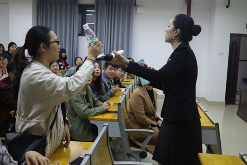 中国素来以“礼仪之邦”享誉于世,礼仪也愈来愈受到国际社会的重视。讲座上,年颖老师采用幽默风趣的演讲风格,通过引古博今的讲解和生动的图片展示向参训人员介绍了个人形象提升、非语言信号管理、沟通礼仪等重要礼仪知识,并全面讲述了仪表着装、举止交往、用餐礼仪等基本礼仪常识。此外,年颖老师还通过现场互动及示范的方式调动现场氛围,使得参训人员在高涨的学习热情中,加深了对礼仪重要性的认识,掌握了更多实用的社交礼仪知识。