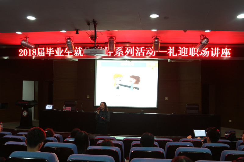 讲座中,徐书记从自我的角色与职业定位、职业形象的塑造、职业礼仪的应用等方面进行讲授,并结合她自己的亲身经历与自己在人际交往中的感悟,用诙谐幽默的语言向在座的同学们强调了行为礼仪在职场、社交中的重要性。在讲座中,徐书记用亲和的笑容让会场保持着一个轻松而不失严肃的氛围,偶尔书记也插入真实的事例让同学们对不同情景下正确的行为礼仪有了更加深刻的了解。