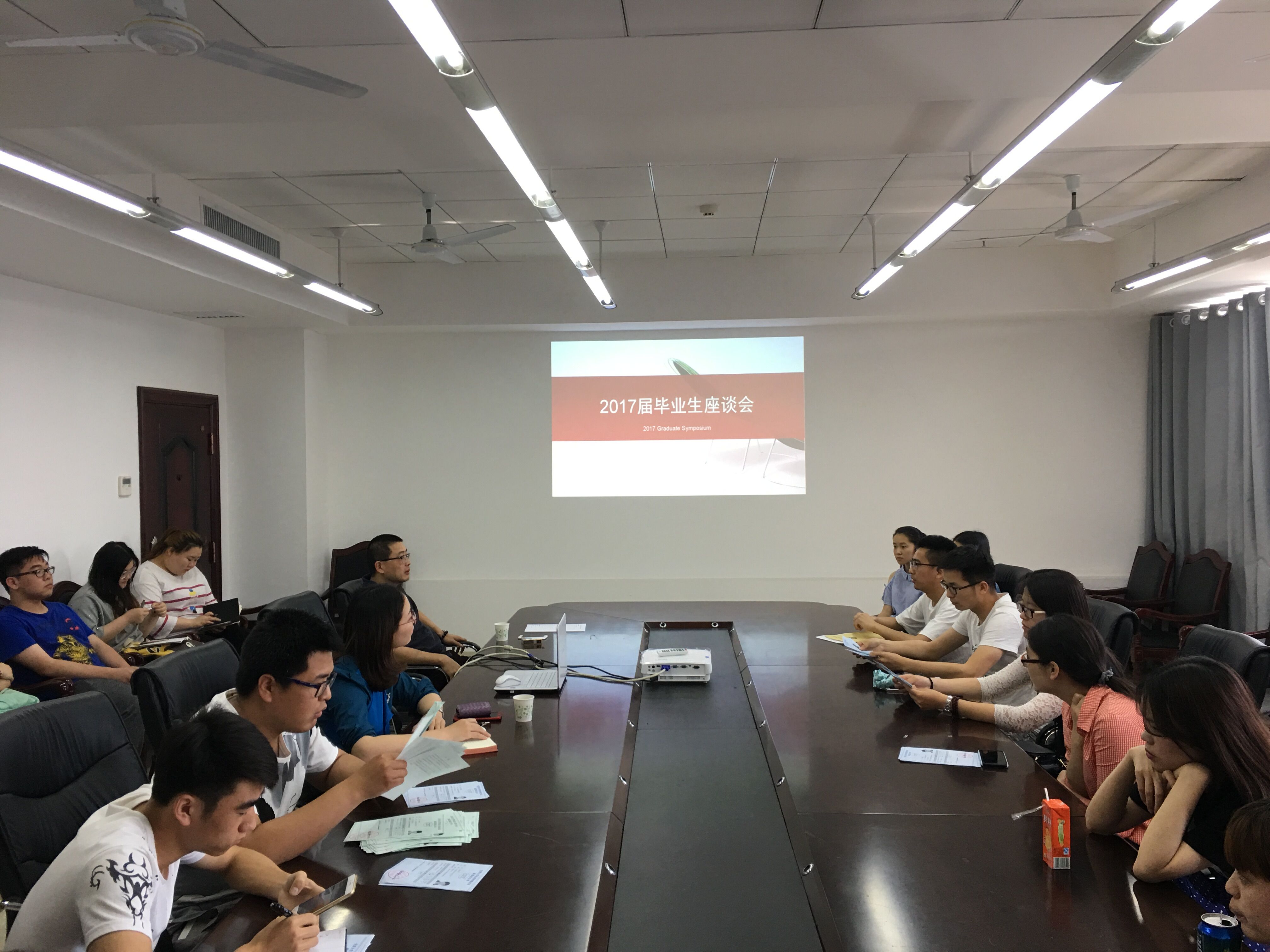 2017年5月17日下午,商学院2017届毕业生座谈会在文科楼南1206会议室召开。出席座谈会的有商学院党委副书记徐钰婷,就业专干董志军老师、胡旭老师,2013级的毕业生代表及低年级学生代表,会议由董志军老师主持。